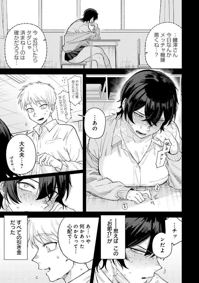 学校中が避けて通る一匹狼のヤンキー女子・鱶澤。彼女に気まぐれで声をかけてしまったことがきっかけで、主人公の男子は”専属の性欲処理係”というポジションに収まってしまった。呼び出されたら応じ、前戯もなく、顔も合わせないまま使われるだけの関係。主人公にとっては完全に一方通行の、感情の入り込む余地がない営みだった。